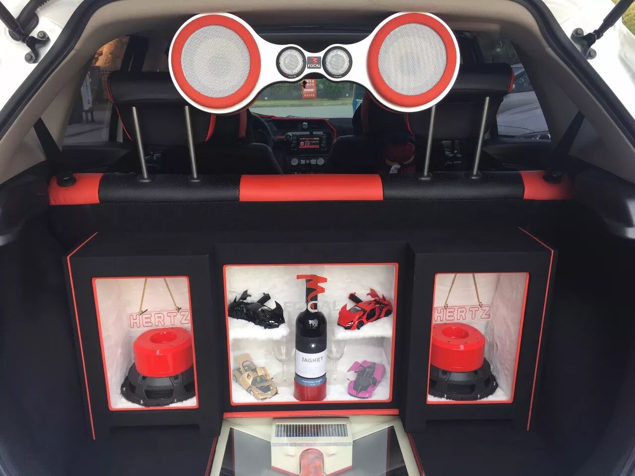 飞度升级后的汽车音响效果非常好,听感丰富清晰,层次鲜明,高频通透,中频圆润,低频充满力量。总而言之,是一次别出心裁的创意设计,又能大大提升音质,让小飞度更加生动,让生活更加有趣。