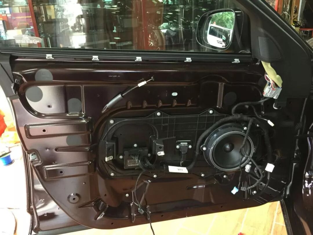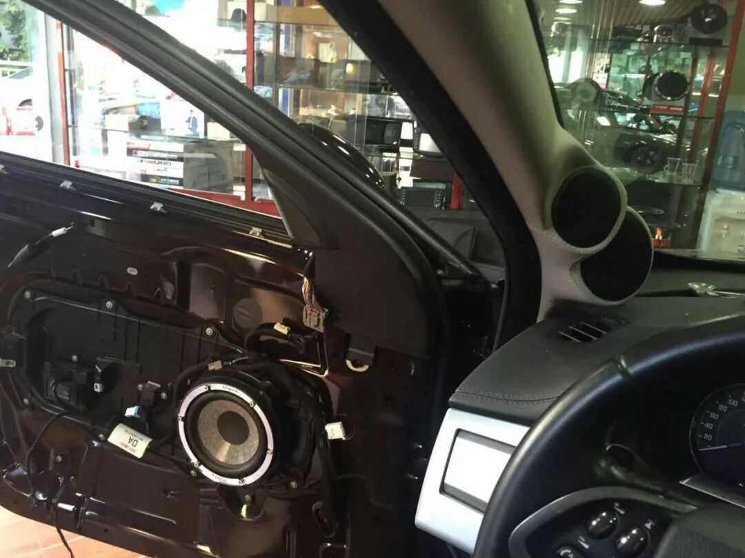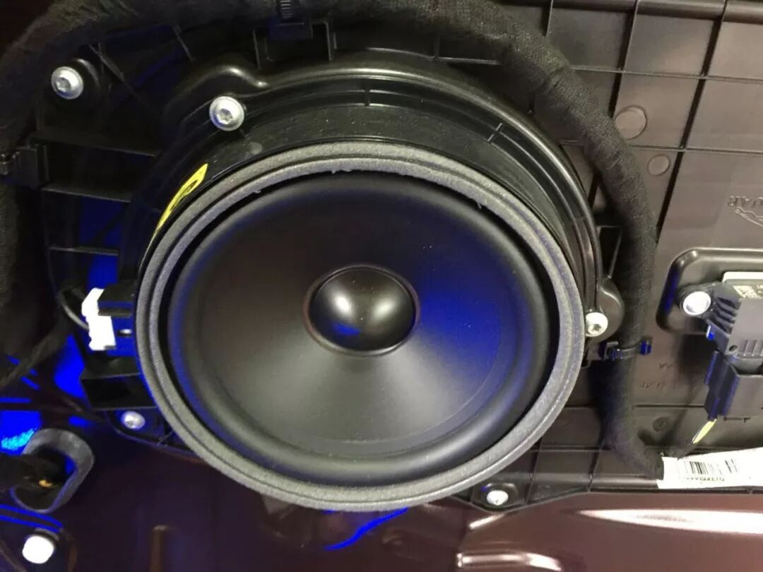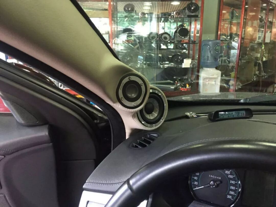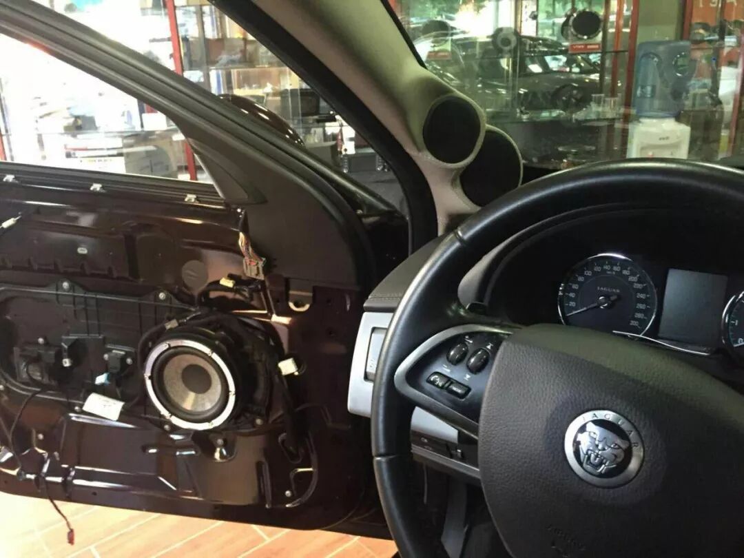 捷豹XF改装前声场A柱倒模法国 FOCAL Kit n°7高音和中音单元,值得一提是广州广声汽车音响在空间、声场相位和安全性上做到了极佳的平衡,满足听音角度也照顾到A柱的驾驶视线。FOCAL Kit n°7中低音安装在门板喇叭位,加上防水罩和喇叭座保护固定。