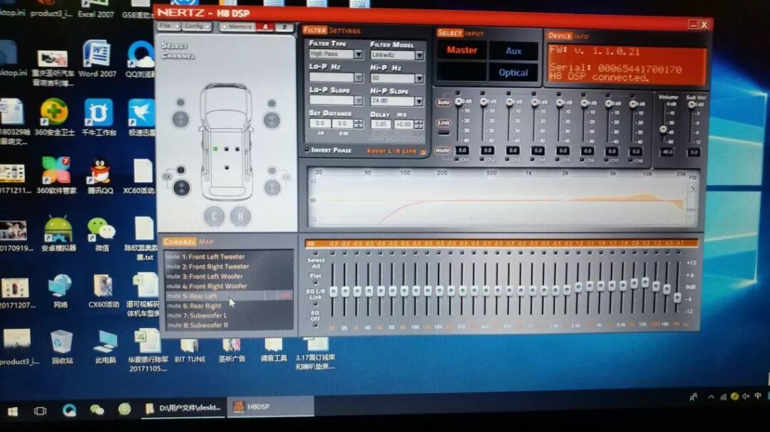 专业的汽车音响店,除了专业的改装技师之外还有专业的改装用品。从整套音响系统来看, 赫兹H8 DSP处理器为此次改装又增色几分(赫兹H8 DSP 是一款专注于汽车音响的高端数字音频信号处理器。该产品采用了24比特模拟/数字和数字/模拟转换器,通过赫兹研发团队独特开发和设计的处理软件,实现控制还原调音过程中的每一个参数,确保还原的每一个细节都能达到精准)。