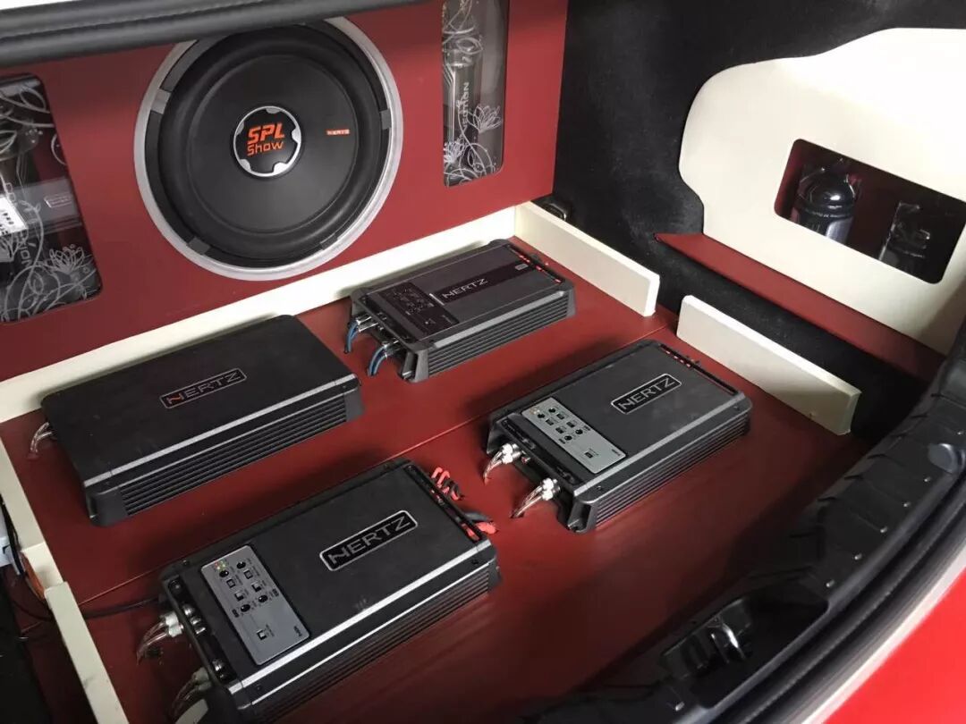 为补充动态和低频下潜的部分,就交由尾箱中的一个意大利赫兹SX300十二寸超低音扬声器超低音负责。整套音响系统用上五台意大利赫兹顶级功放推动,纯手工打造的尾箱,以HI-FI全场的的姿态出现,呈现出最好的乐感。